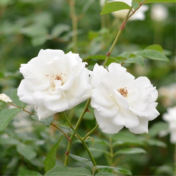 La rosa 'Iceberg' es una planta popular por su larga y abundante floración blanca desde la primavera hasta el otoño, con flores dobles agrupadas en ramilletes y un follaje verde claro. Es una rosa muy resistente y de bajo mantenimiento, que se puede cultivar como arbusto o trepadora. Se adapta bien a varios tipos de suelo con buen drenaje y a pleno sol, aunque tolera algo de sombra parcial.
