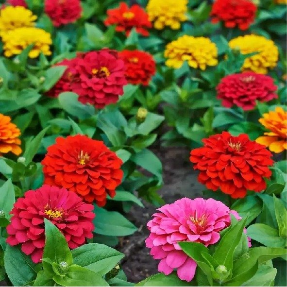 Las zinnias son plantas anuales, a menudo de 30 a 90 cm de altura, que se distinguen por sus flores llamativas y coloridas que duran desde la primavera hasta el otoño. Sus hojas son ásperas y su follaje es de color verde oscuro. Son excelentes flores cortadas, se usan en jardinería para crear macizos o borduras y son ideales para atraer polinizadores como mariposas y abejas.